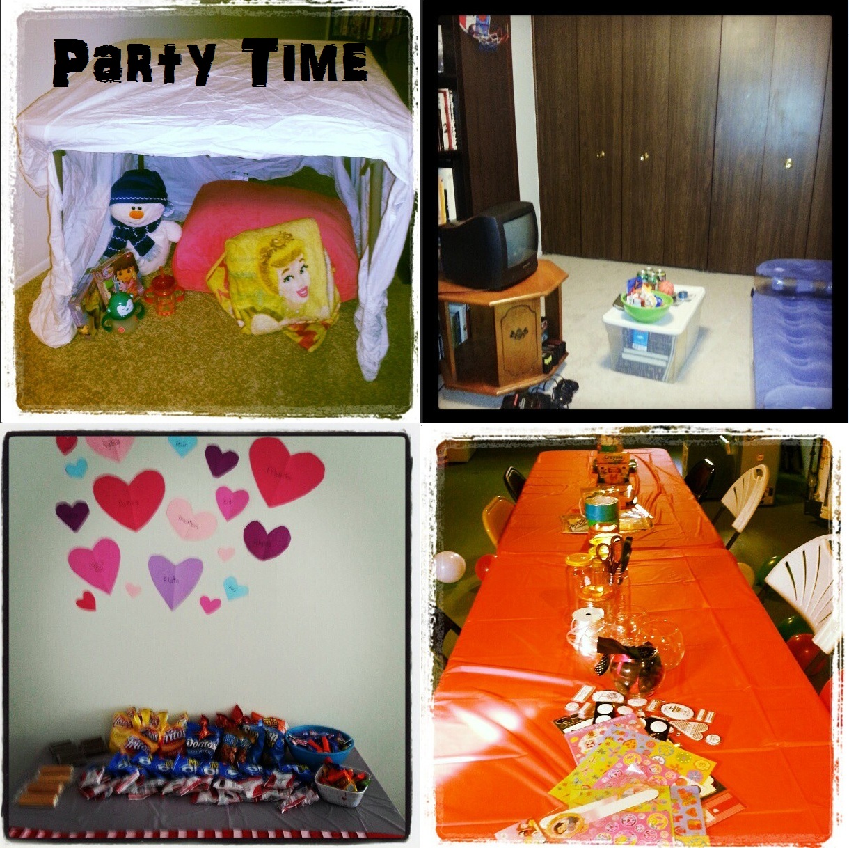 Saturday night my long awaited party for the nieces and nephews. 11 kids, 2 adults and 1 townhouse. I spent the week planning everything out. A fort for Erin and Reese, a mancave for the boys, an unlimited supply of snacks and tables full of crafts. Did I go overboard? Yes. But I’m ok with it. Everyone had a great time and there were no problems.