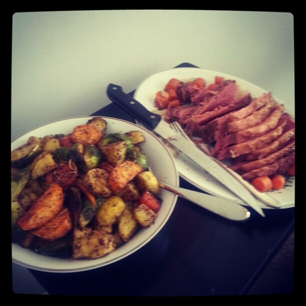 Thankfully, the corned beef was delicious. As was the mac and cheese. Alton Brown never lets me down. Giada’s veggies on the other hand were WAY too seasoned. Fortunately, I had some cold cut carrots as a substitute.