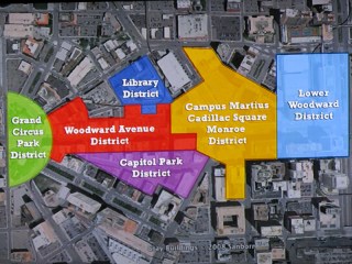 Placemaking is the word of the day here in the D. Our billionaire patron, Dan Gilbert, had a pep rally to reveal his long term plans for downtown. I watched about 30 minutes of the event as it streamed this afternoon and was impressed. He’s working hard to make Detroit a great place. He’s carved out his part of town [below] and is covering every base to ensure it is successful. He started by bringing jobs to the city and now he’s focusing on the residential and retail side of things.