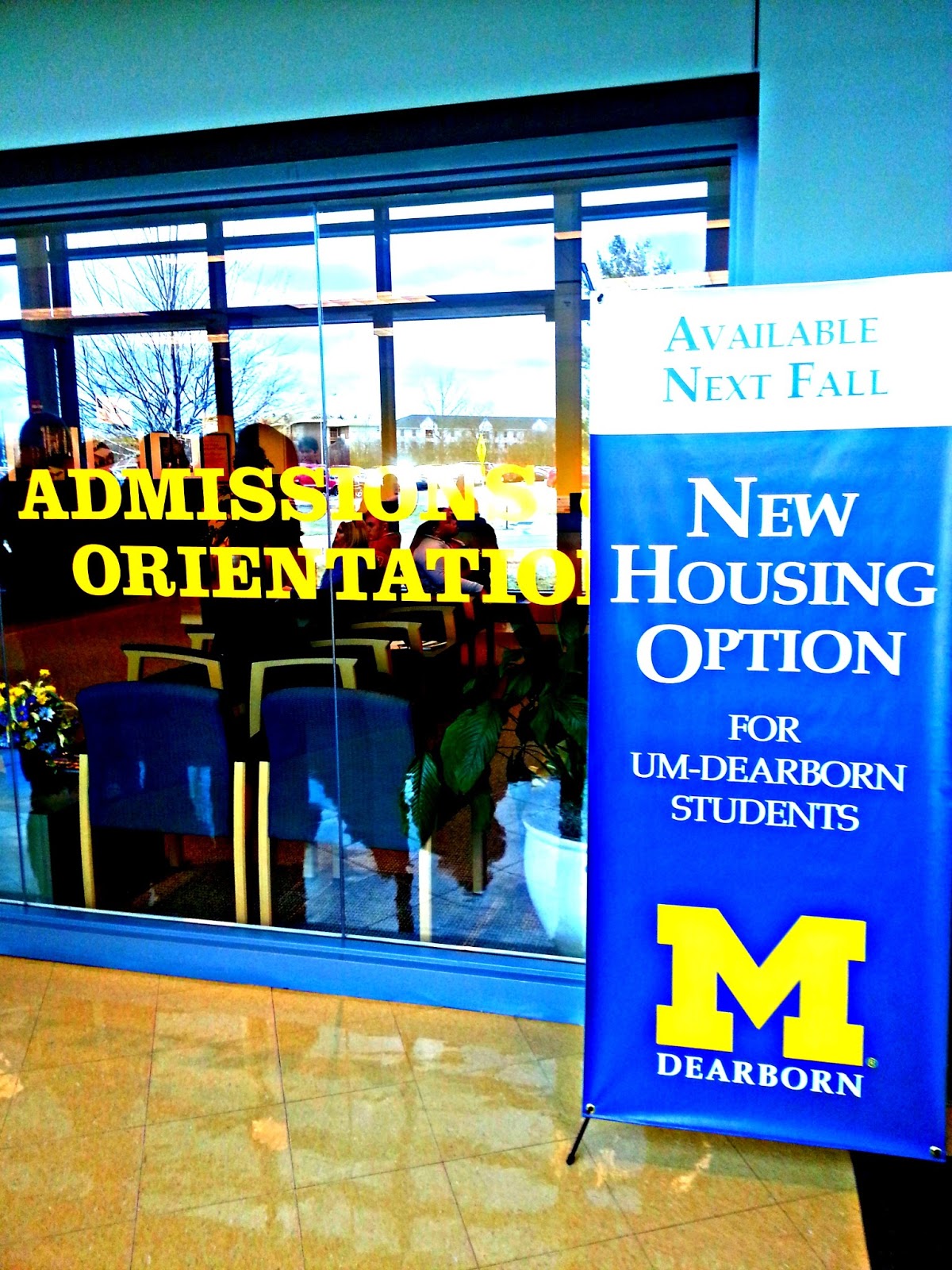 Tuesday was a two-part trip to Dearborn. The first visit was to Henry Ford Community College. It was an informative visit but rushed. Since it’s a community college the girls weren’t wowed by what they saw but they responded well to the MacKenzie Fine Arts Center. I sent the Big Bang Theory picture to Mom because I knew she’d get a kick out of it.