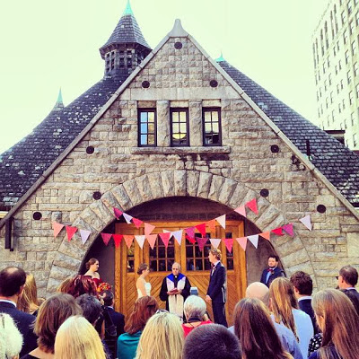 The wedding was at the Inn on Ferry Street but because Emily hates being the center of attention I didn’t go. Instead we waited to see the newlyweds at the reception. The Mercantile Company was the perfect venue for them and they had the BEST food, drinks and dessert.