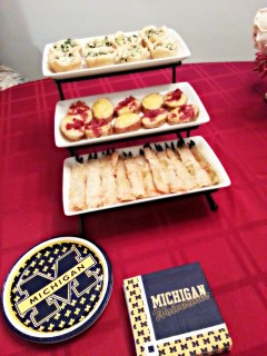 The wedding party brunch wasn’t my only hosting gig this weekend. I also assisted Aunt Margaret with a graduation dinner for Mom. I was tasked with decorations and appetizers. I selected simple snacks that could be easily eaten without utensils and cooked for the least amount of time at the same temperature. All three dishes cooked for 15 minutes at 375 degrees.