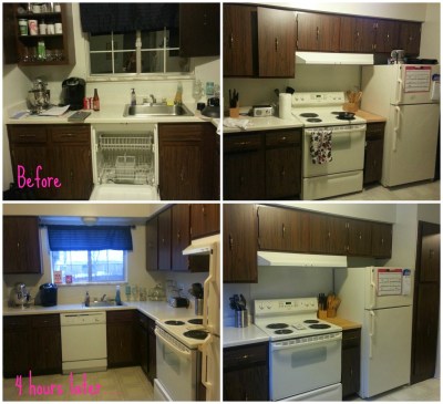 - Stove: Remove hardware/racks and wash. Our reflector bowls look bad and I still haven’t found a trick to get them shiny (Pinterest tips aren’t working). Clean the inside of the oven as best you can, then cover it with oven paste (Stir together 3/4 cup baking soda and 1/4 cup warm water), let sit for several hours or overnight, scrape off rough spots and sponge wash clean. Lift your stove top to clean food that falls through – I didn’t know about this part of the stove until my second apartment. I can’t move my stove but when I removed the drawer I was able to clean the floor. I was also able to remove grease that filled the drawer’s wheels.
