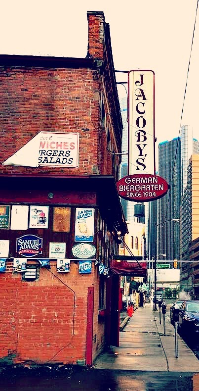 Where do people in Detroit drink beer? Well for the last 110 years they’ve been going to Jacoby’s (pronounced JaKobe’s ala Kobe Bryant). The small saloon is located downtown and serves delicious German food. Danny ordered Jager Schnitzel and on the bartender’s recommendation I ordered the German Sausage Dinner with knockwurst and bratwurst. Both were great choices and Danny can’t wait go back. Although it’s not pictured Danny did order beer – Spaten Optimator from Munich.