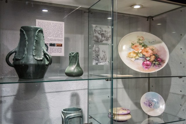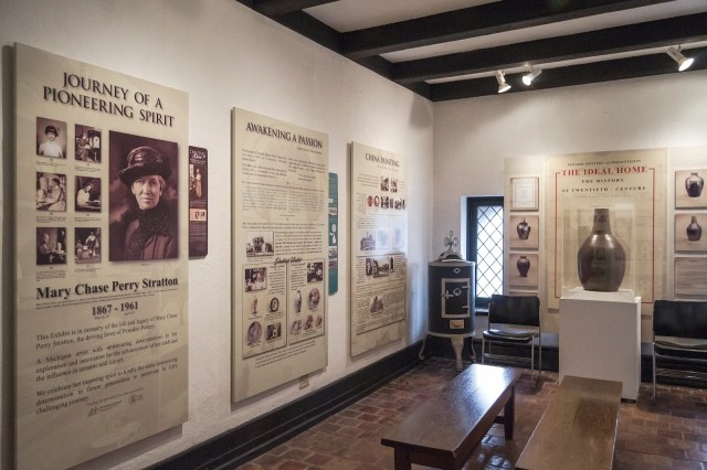 The second floor of the 100+ year old building is a museum centered around the work of Pewabic’s founder, Mary Chase Perry Stratton. Stratton was a notable and progressive woman who challenged the norms of her day by actively pursuing a career in art. She began her career as an artist by doing china painting. The fine art captured her attention for many years; however, she eventually felt the desire to create not only a painting but the vessel itself. Stratton began molding clay and developed a coloring technique with an iridescent glaze that continues to be popular today.