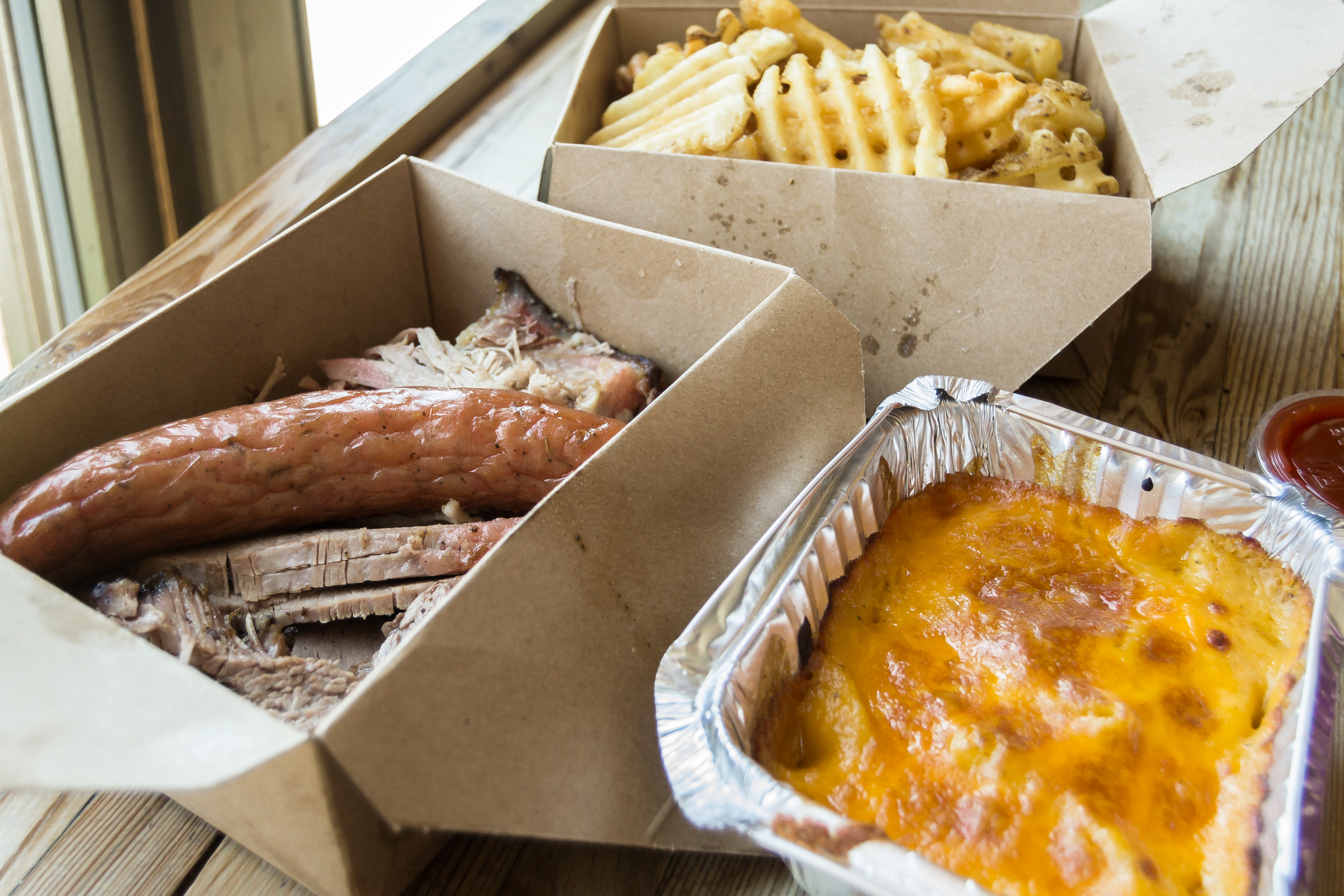Admittedly, I haven’t been to the original Slows in a while. Instead, we frequent Slows To Go. The quicker food joint is located in Midtown, a couple blocks away from Danny’s work (you can probably guess who frequents it most). The menu is slightly different, my catfish favorite isn’t on the menu, but there is still plenty to choose from. We generally get a sandwich and our most recent stop was motivated by my craving for a beef and cheddar sandwich – to my extreme disappointment it was no longer on the menu! Instead we got literally a little of everything else (i.e. brisket, sausage and pork).