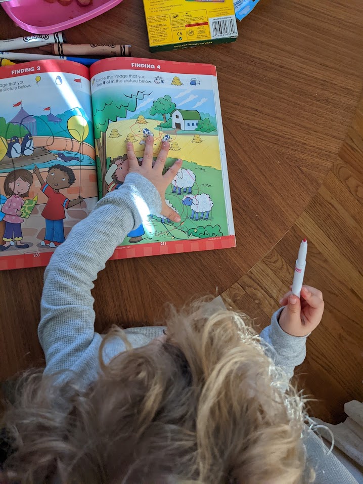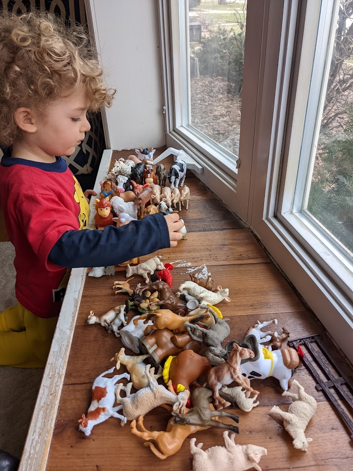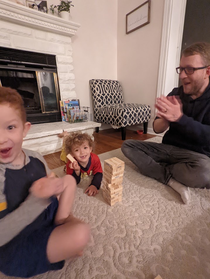 Sam spends most of his time playing and talking about farm animals. Danny received Jenga as a company gift and Sam was a rock-star! He touches pieces to see what’s loose and is really careful. Puzzles are also a big hit.