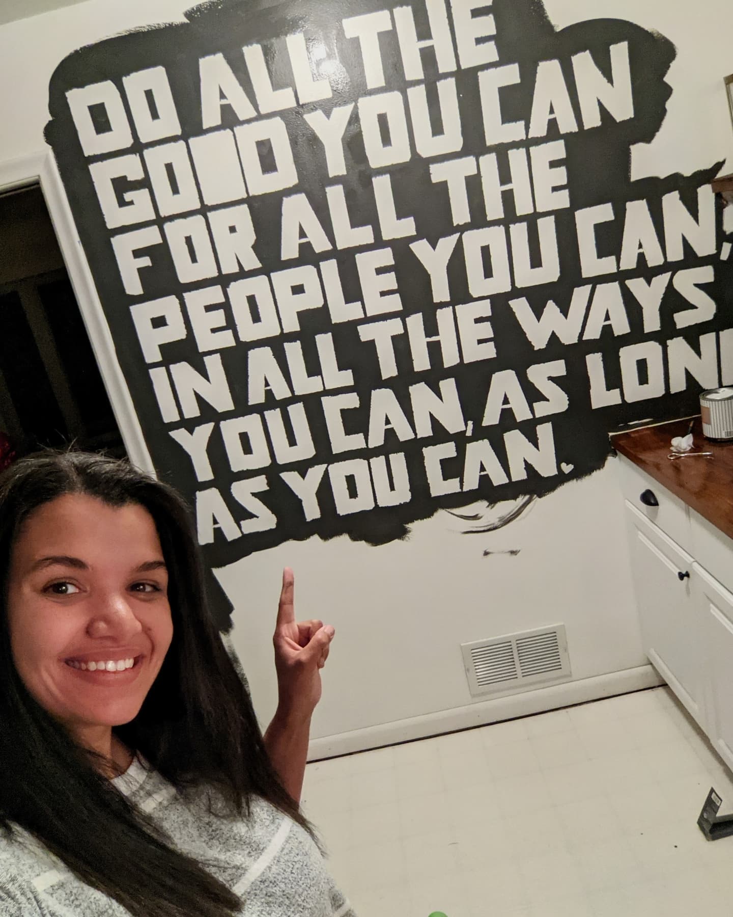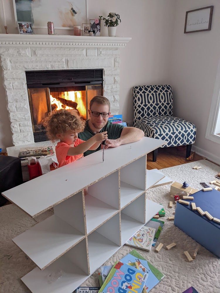 I finally finished painting the kitchen. The mural I did in October I painted over and the completed project looks great. I’m going to make a sign of the quote but quite frankly that had been therapy during a difficult campaign. Danny also wanted to change up the boys room and I’m pleased with the new bookshelf too – it was especially fun watching Sam build it.