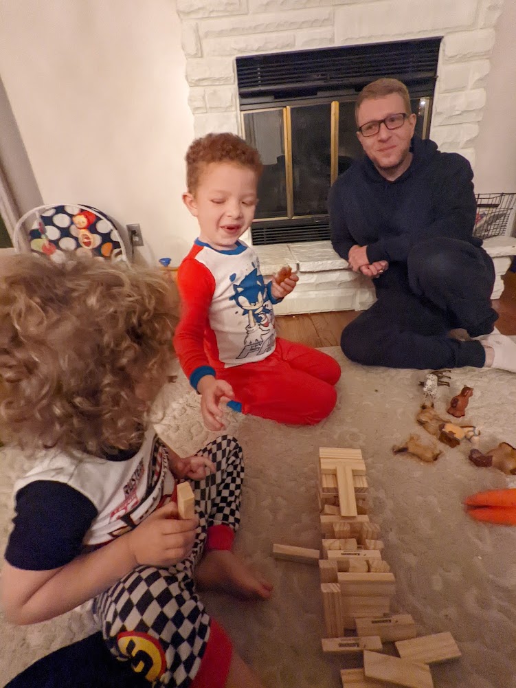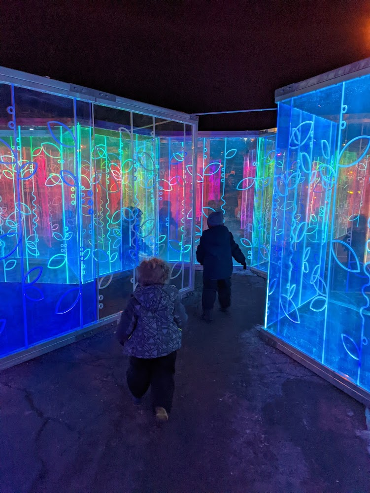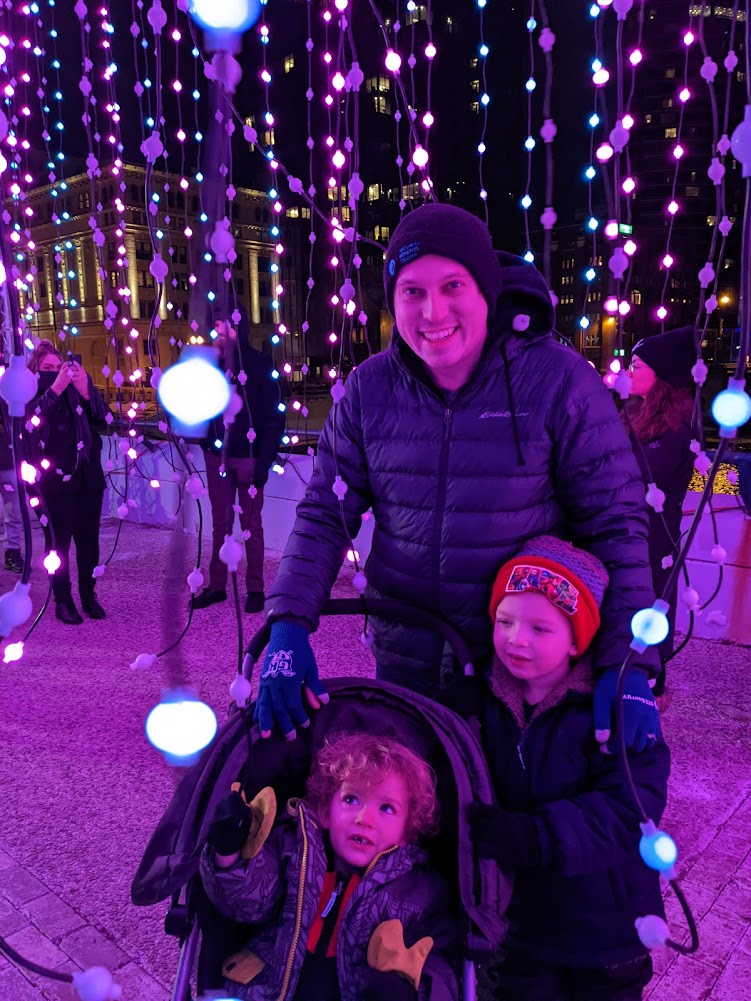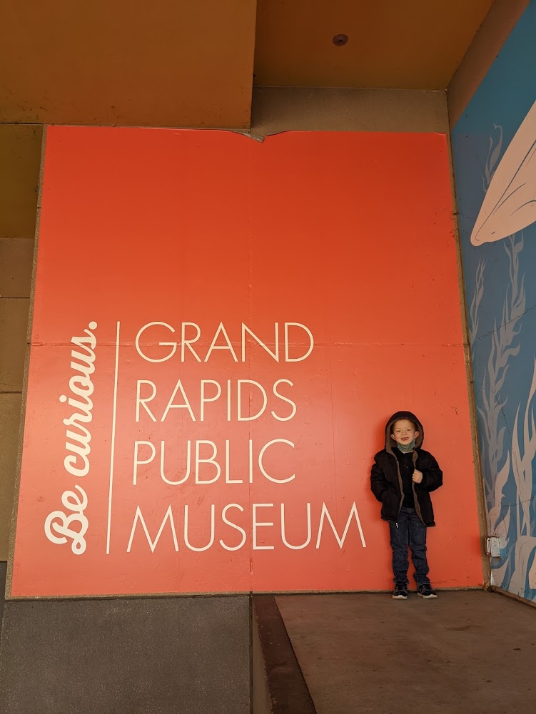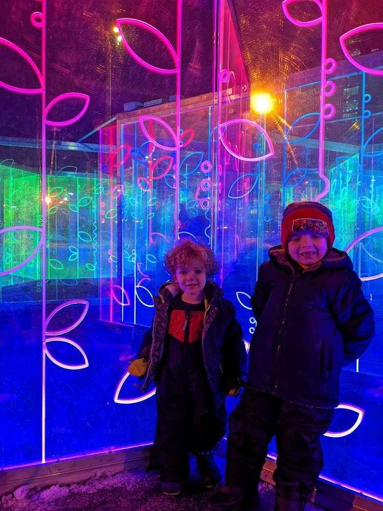 I had had the World of Winter festival on my goals list and visiting Cory more often. So as our official re-entry into the world we visited the Grand Rapids Public Museum, Uncle Cory (to watch the Bucs win) and The World of Winter. The Public Museum was fantastic. Large, affordable, interactive science for Lucas and plenty of animals for Sam. For lunch we went to an Italian place that had the best tiramisu ever. Since the boys didn’t nap during the day they fell asleep on the way to the festival. Fortunately, the lights were so engaging they were happy to wake up for it. I enjoyed the walk and with Cory parking at the end it was a doable walk for my anti-walking guys.