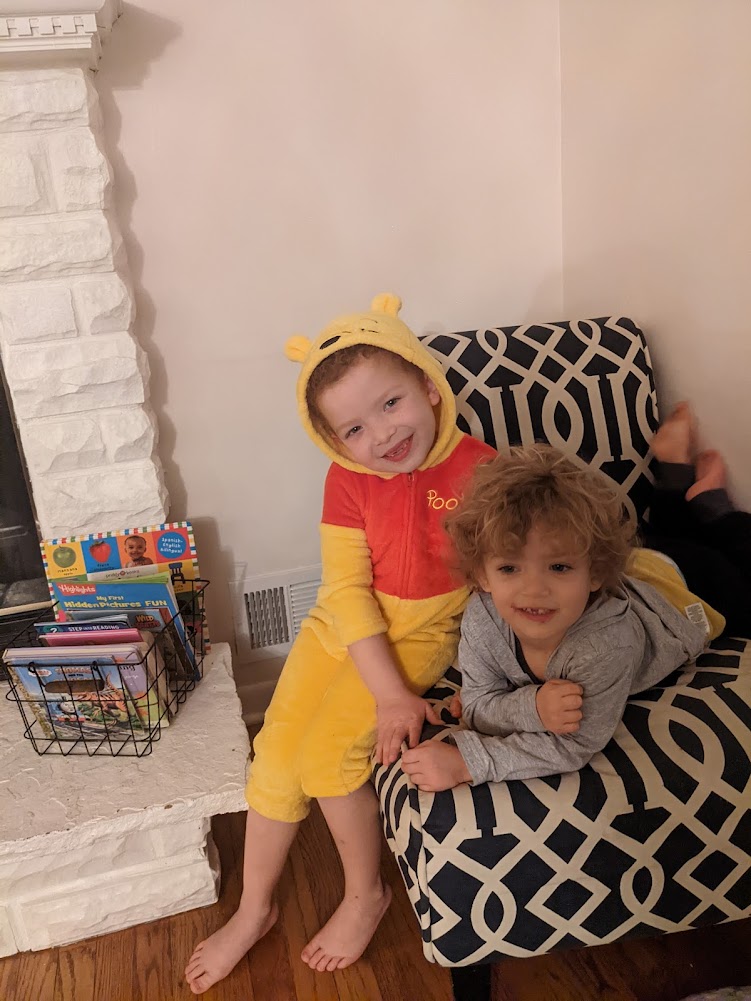 Wednesday night Lucas put on Sam’s Pooh jams (which Sam won’t wear) and it was adorable.