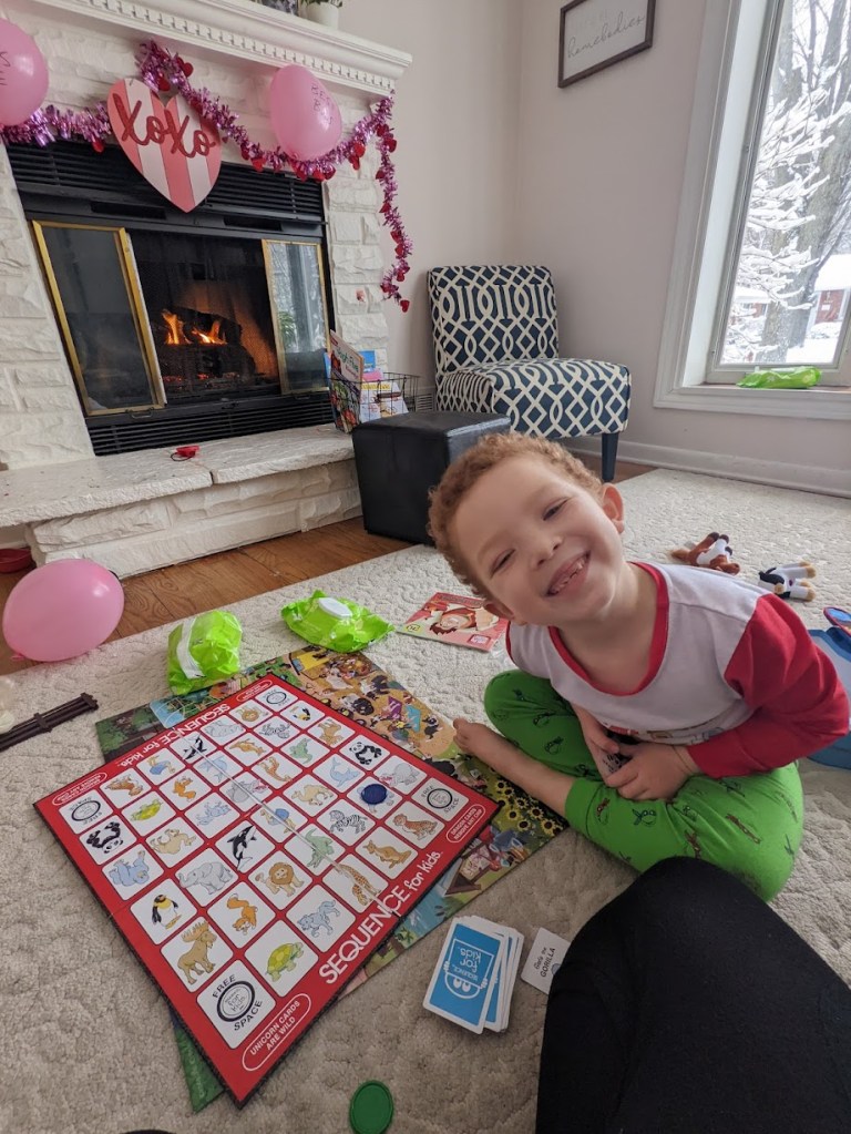My 2022 resolve to live in the moment and enjoy life includes celebrating the little things – like Valentine’s Day more with the boys. Farmer Sam was begging for Little Blue Truck so I decided to start February off with some gifts – mainly from the dollar store. My funny little guys woke up early and I told them to go find their surprise and even with a cleaned living room and fully decorated mantle – they told me they couldn’t find it lol – this is why I have low motivation to go crazy on these things. Once they found it they enjoyed it.