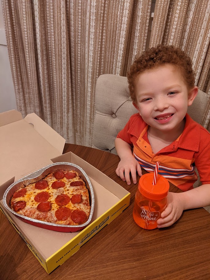 Day 44: Early morning Superbowl segment on Fox 2 (thanks for the screenshot Brian!), date with Danny, Super Bowl/Halftime Show and heart pizza for the boys.